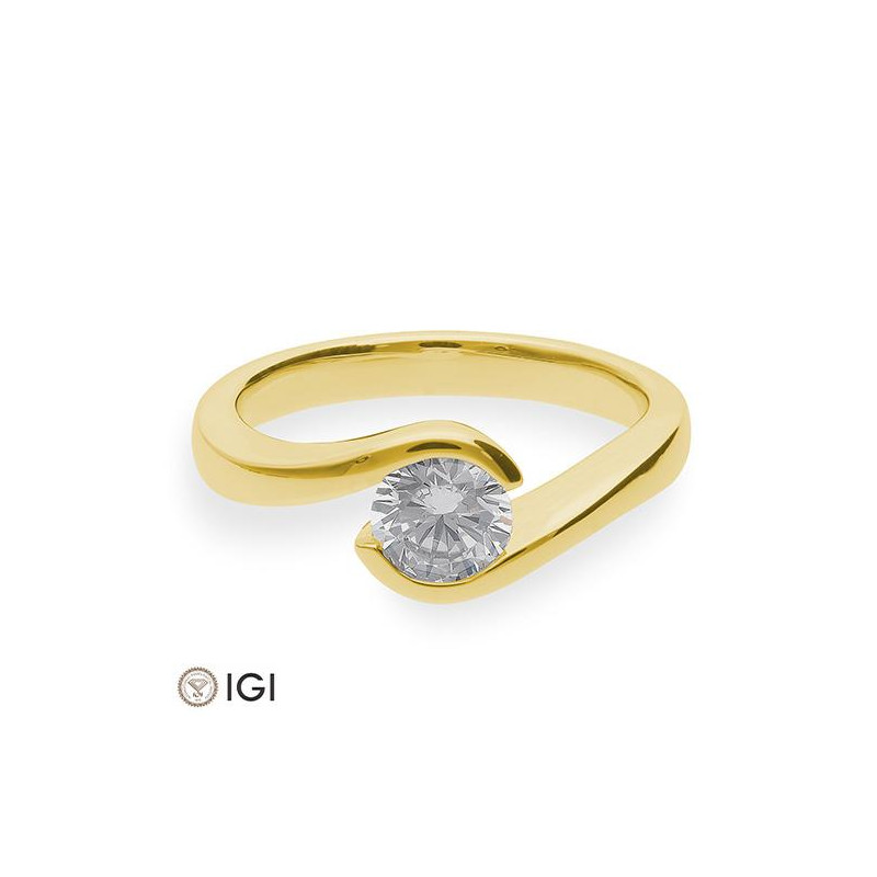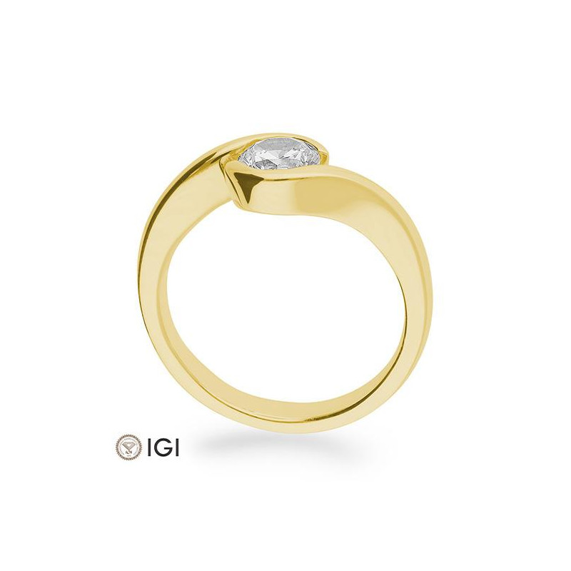 Bague solitaire or jaune 750/18 ct. avec diamant, 0,80 Ct. H SI