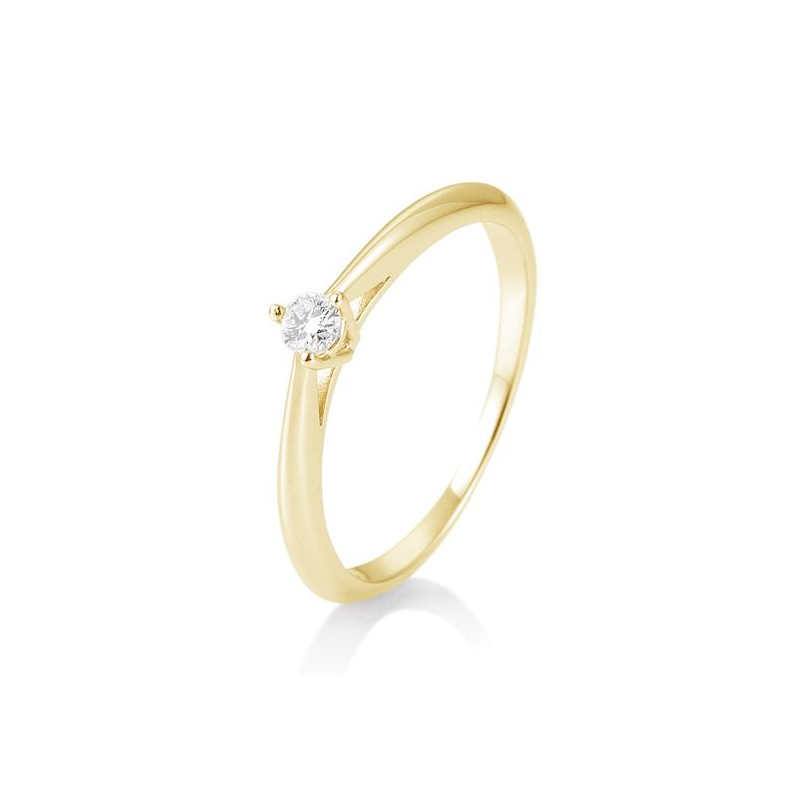 0,10 ct. H Si Bague solitaire or jaune 750/18 ct. avec diamant, 3 griffes