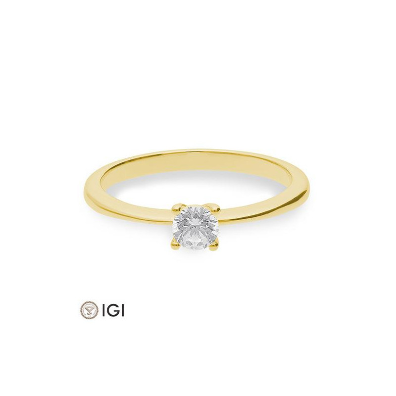 0,30 ct. H Si Bague solitaire or jaune 750/18 ct. avec diamant , 4 griffes