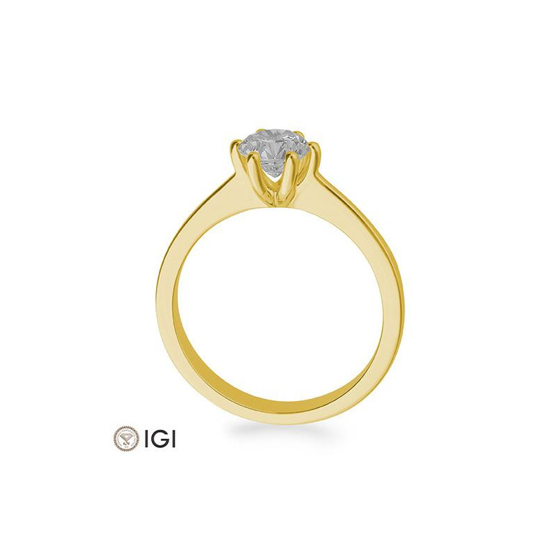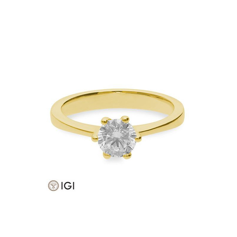 0,80 ct. H Si Bague diamant solitaire or jaune 750/18 ct., 6 griffes