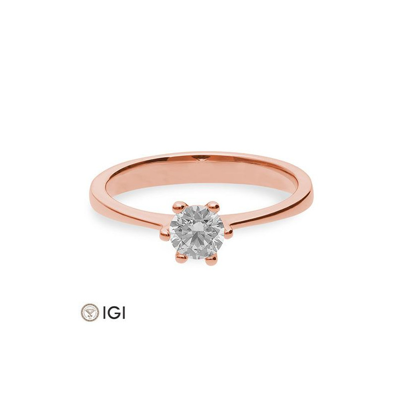 0,50 ct. H Si Solitärring Rotgold 750/18 Kt. mit Diamant, 6 Griff