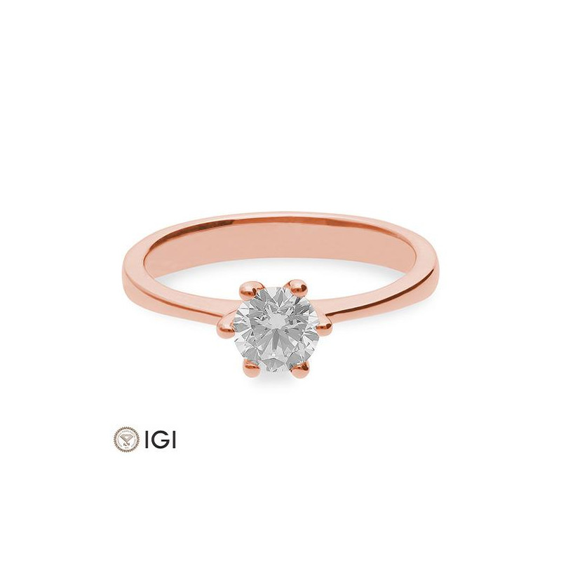 Solitärring aus Rotgold 750/18 ct. mit Diamant 0,60 ct. H SI, 6 Krallen