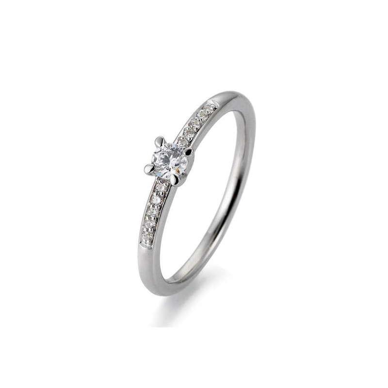 Solitärring Platin 950 mit einem zentralen Diamanten von 0,15 ct. H SI, 4 Krappen, insgesamt 0,215 ct. H SI