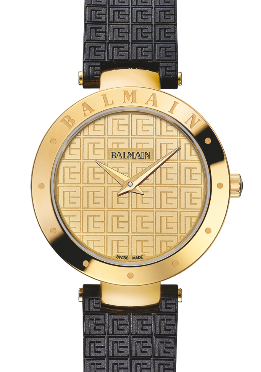 Die Balmain Balmainia Bijou ist eine kunstvolle Damenuhr, die Zartheit mit einem modernen, von der Pariser Haute Couture inspirierten Design verbindet. mit einem modernen, von der Pariser Haute Couture inspirierten Design verbindet. Das spiegelvergoldete Zifferblatt, die mit „Balmain“ gravierte Lünette und das minimalistische spiegelvergoldete Zifferblatt, die mit „Balmain“ gravierte Lünette und das minimalistische Display sorgen für Raffinesse im Alltag. während das 33 mm Gelbgold PVD Gehäuse mit einem schlichten 6,25 mm Profil und einem schwarzen Kautschukarmband mit Spiegelmuster für Raffinesse im Alltag sorgt. Dieser Swiss Made Zeitmesser ist mit einem Saphirglas ausgestattet.