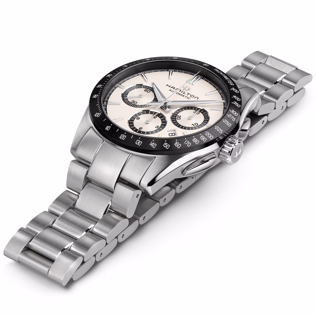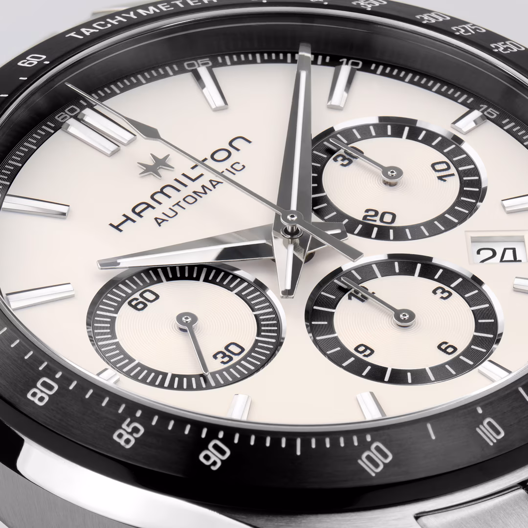 Die robusten und raffinierten Jazzmaster Performer Uhren wurden für Liebhaber von Stil und Präzision entworfen und begleiten Sie von mondänen Abenden bis hin zu Abenteuern in der Natur. Die Jazzmaster Performer Automatic Chronograph wird von dem automatischen Chronographenwerk H-31 mit einer Gangreserve von 60 Stunden angetrieben. Das 42 mm große Edelstahlgehäuse wird von einem klassischen weißen Zifferblatt, einer kontrastierenden schwarzen Lünette und einem markanten Edelstahlarmband akzentuiert.