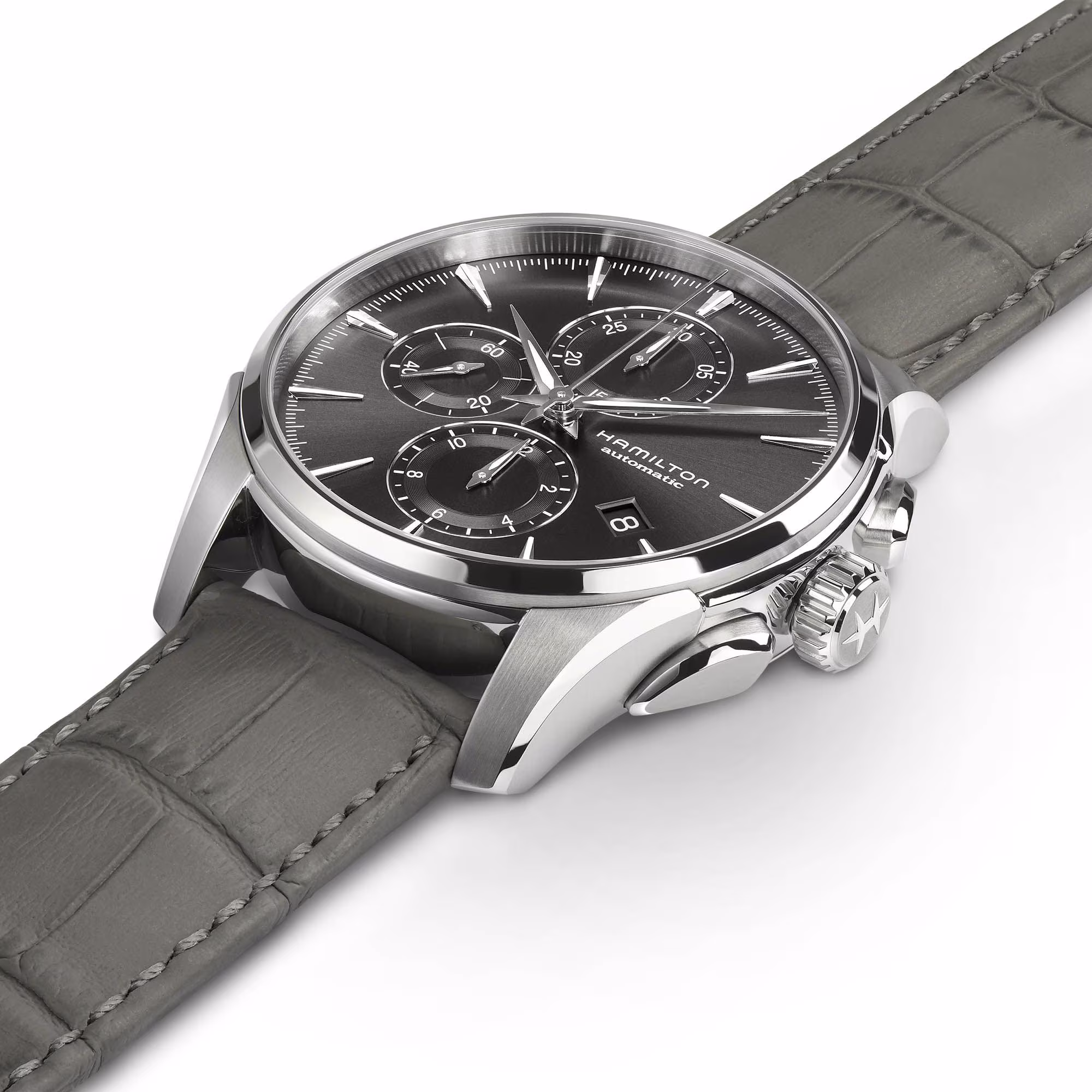 Die Jazzmaster Auto Chrono passt sich mühelos dem Tempo der modernen Zeit an, während sie zu ihrem eigenen Rhythmus tanzt....