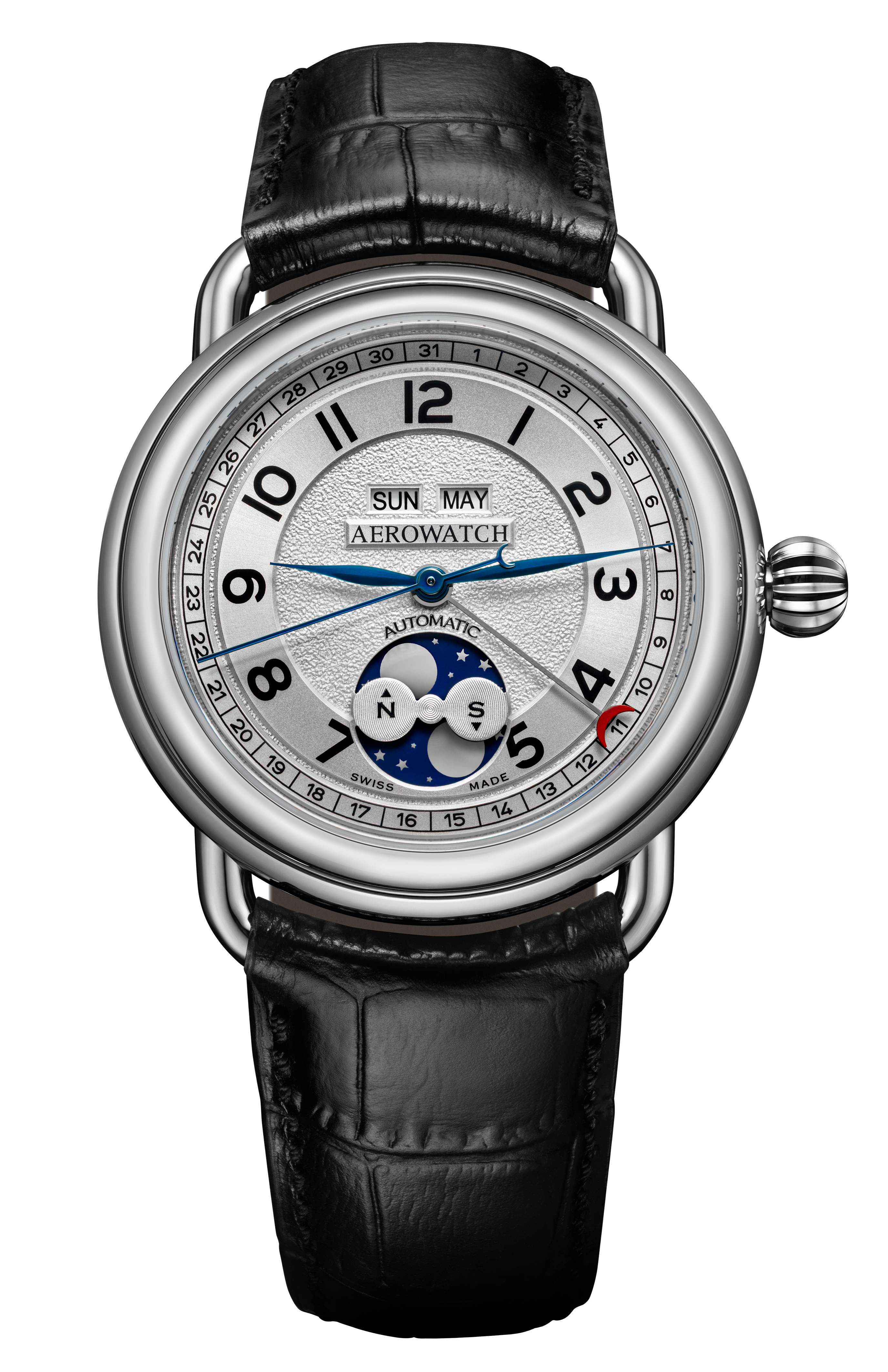 Aerowatch 1942 Automatic Moon Phase Silbrig