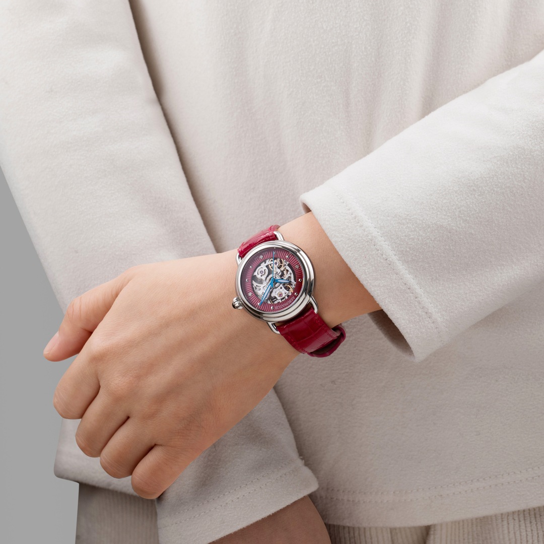 Le boîtier en acier de la marque Aerowatch 1942 Lady Automatic Skeleton rouge et l’équilibre de ses proportions sont mis en valeur à chaque poignet. Les aiguilles feuilletées bleues, qui complètent le design équilibré, sont le signe d’une élégance intemporelle. Le mouvement squelette soigné, laisse entrevoir l’intérieur de la montre à travers les ouvertures, est un régal pour les yeux. L’Aerowatch 1942 Lady Skeleton est animée par le mouvement automatique Sellita SW200, qui assure une réserve de marche de 38 heures.