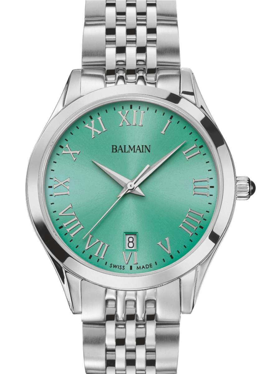 La Balmain Classic R est une montre féminine artistique alliant élégance rayonnante et design moderne inspiré de la Haute Couture parisienne. Son cadran vert turquoise et ses chiffres romains classiques lui confèrent une touche de douceur et d’expression, tandis que son boîtier en acier inoxydable de 34 mm, au profil élégant de 6,80 mm, et son bracelet assorti offrent un style élégant au quotidien. Ce garde-temps de fabrication suisse est doté d’un verre saphir.