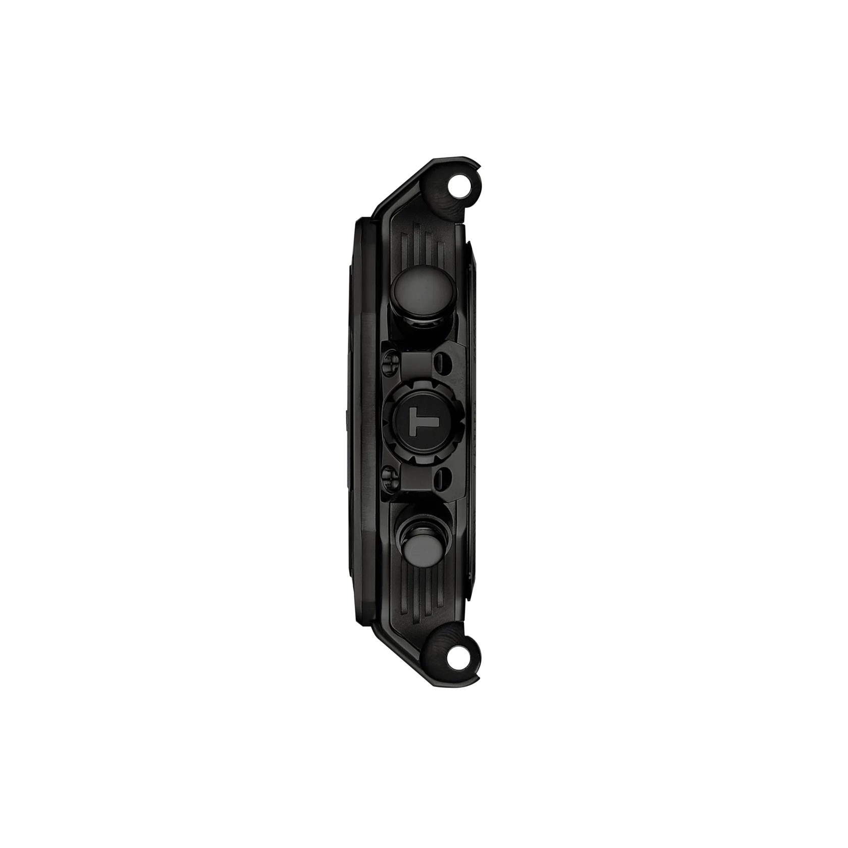 Tissot s’est inspiré de son partenariat avec la course moto pour créer une montre qui reflète le dynamisme des motos et l’émotion du sport.. La collection T-Race immerge le porteur dans un environnement mécanique et en réveille l’esprit. La lunette ressemble à un disque de frein, les poussoirs s’inspirent des guidons et les ailettes de refroidissement d’un moteur sont reproduites sur le côté du boîtier. La montre est étanche jusqu’à une pression de 10 bar (100 m), équipée d’un mouvement chronographe à quartz.