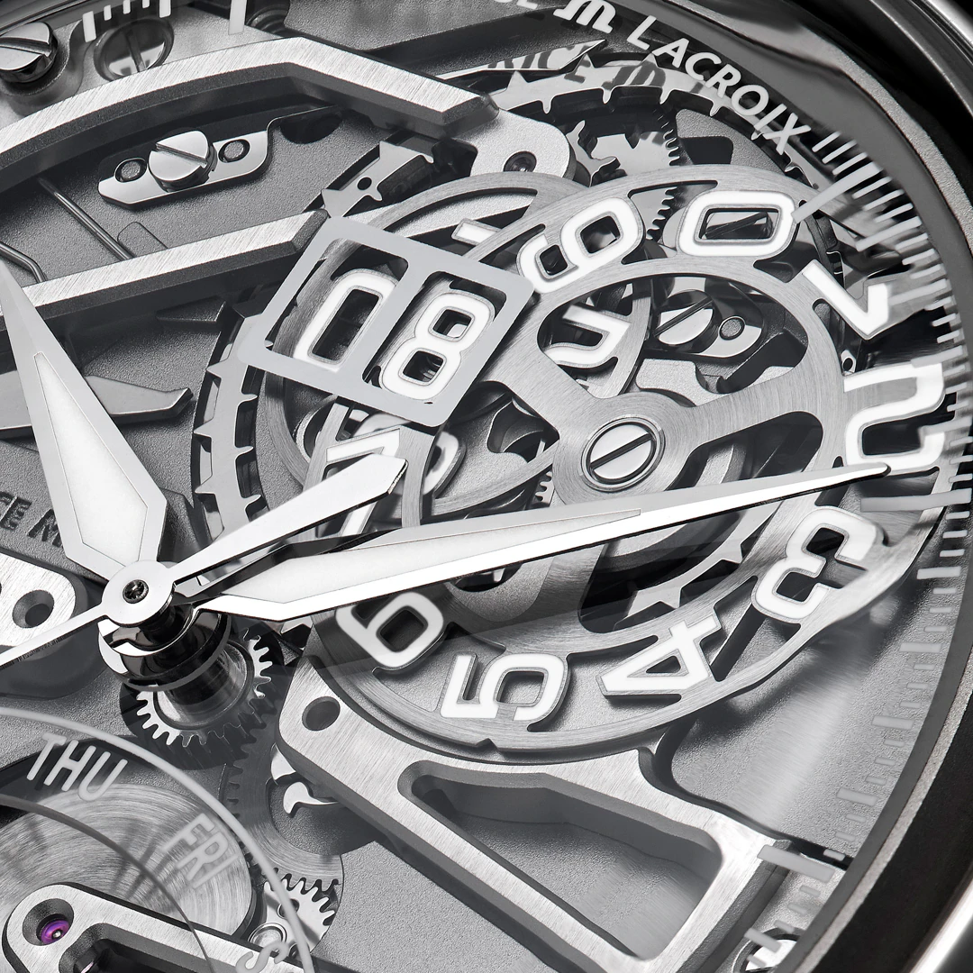 1Depuis 1975, Maurice Lacroix n’a cessé de réinventer l’affichage du temps. Dès 1999 avec la Calendar Retrograde, puis en 2002 avec la Double Retrograde, la marque s’est imposée comme une référence dans cette complication horlogère devenue sa signature.